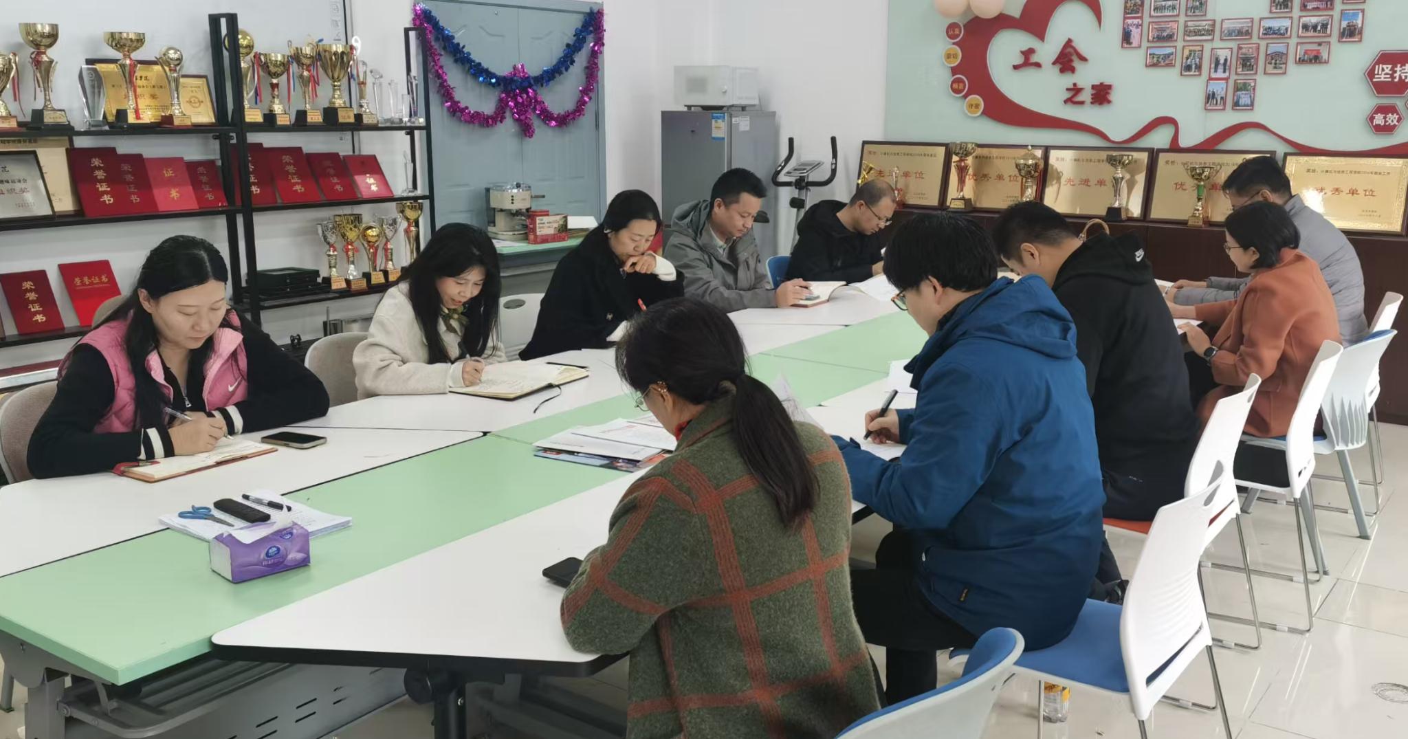 党的二十届四中全会是在我国向第二个百年奋斗目标进军的关键时期召开的一次重要会议。学习好、宣传好、贯彻好全会精神,是当前和今后一个时期的重大政治任务。支部书记带领党员教师们原原本本学习了《中国共产党第二十届中央委员会第四次全体会议公报》,并围绕习近平总书记的重要讲话和全会通过的《中共中央关于制定国民经济和社会发展第十五个五年规划的建议》进行了深入研讨。